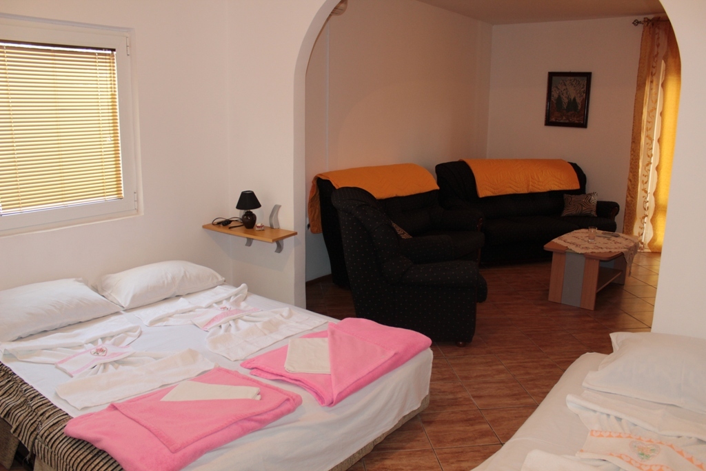 В АРР: одвухкомнатний номер, кухня, французьке ліжко, додатково 3 роздільні Кроатія, кондиціонер, холодильник, чайник, TV з російським каналом, доступ до Інтернету (безкоштовно), простора ванна кімната, балкон. Максимальна розміщення - 5 людини.