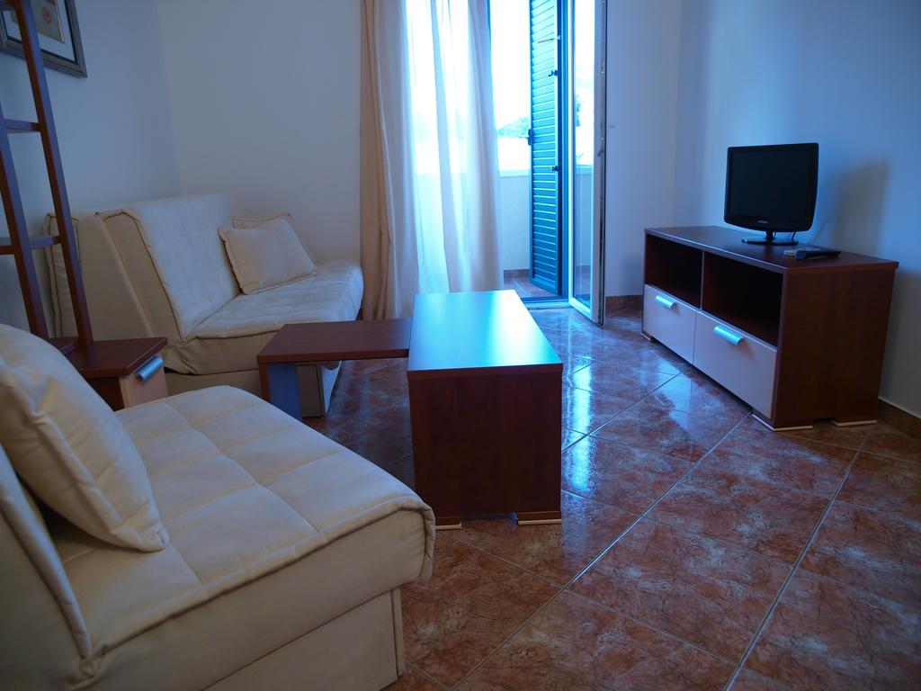 В APP 03/1 br (№1): Площа 25 м2, спальня з французьким ліжком, вітальня з розкладним диваном, кондиціонер, кабельне телебачення, бездротовий інтернет, кухня, холодильник, ванна кімната, тераса, вид на подвір'я.