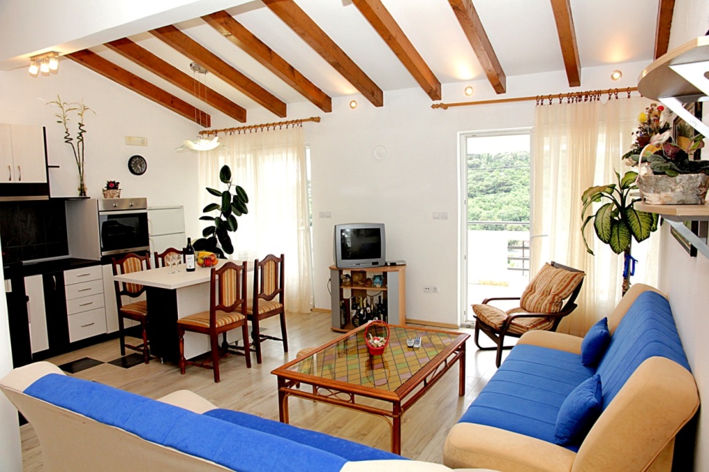 В АРР 04 / SV: Спальня з французьким ліжком, вітальня з розкладним диваном, повністю обладнана кухня, холодильник, кабельне телебачення, Wi Fi інтернет, кондиціонер, санвузол з душовою кабіною, пральна машина, балкон з видом на море. Максимальне розміщення - 4 людини.