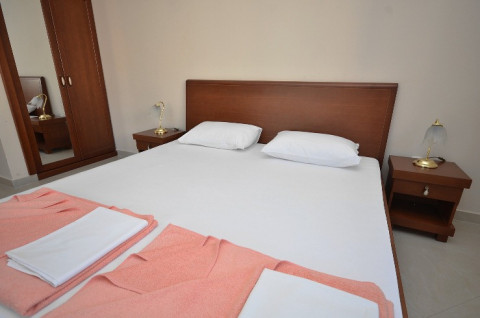 В АРР 04: Двокімнатний номер - окрема кухня з обіднім столом і спальня з французьким ліжком та розкладним диваном. Нові меблі, кондиціонер, кабельне телебачення, холодильник, чайник, ванна кімната з душовою кабіною, балкон, вид на море.
