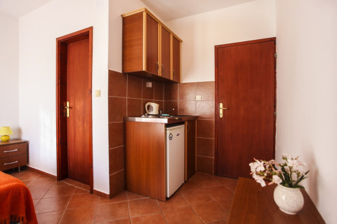 Во всех номерах: полностью оборудованная кухня, кондиционер, спутниковое ТВ, Wi Fi интернет, санузел с душевой кабиной, балкон или терраса.