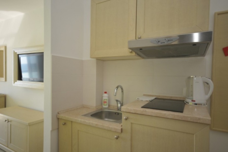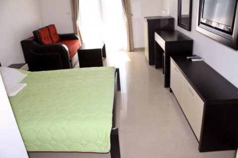 Studio 03 ss (№8,14,20): 25 м2, 2 балкона по 3 м2, один с видом на море, французская кровать (160x200cm) +раскладное кресло (90×200cm), мини-кухня (комплект посуды, электрический чайник, варочная панель), ванная комната с душем, стиральная машина. Максимальное размещение — 3 человека.
