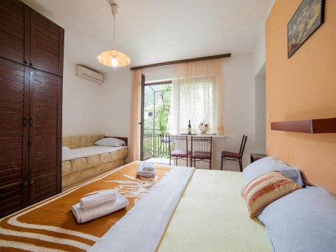 До послуг гостей дво- та тримісні студії. Зміна рушників і прибирання кожен 3-й день. Зміна постільної білизни на 7-й день.