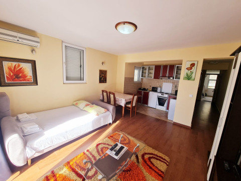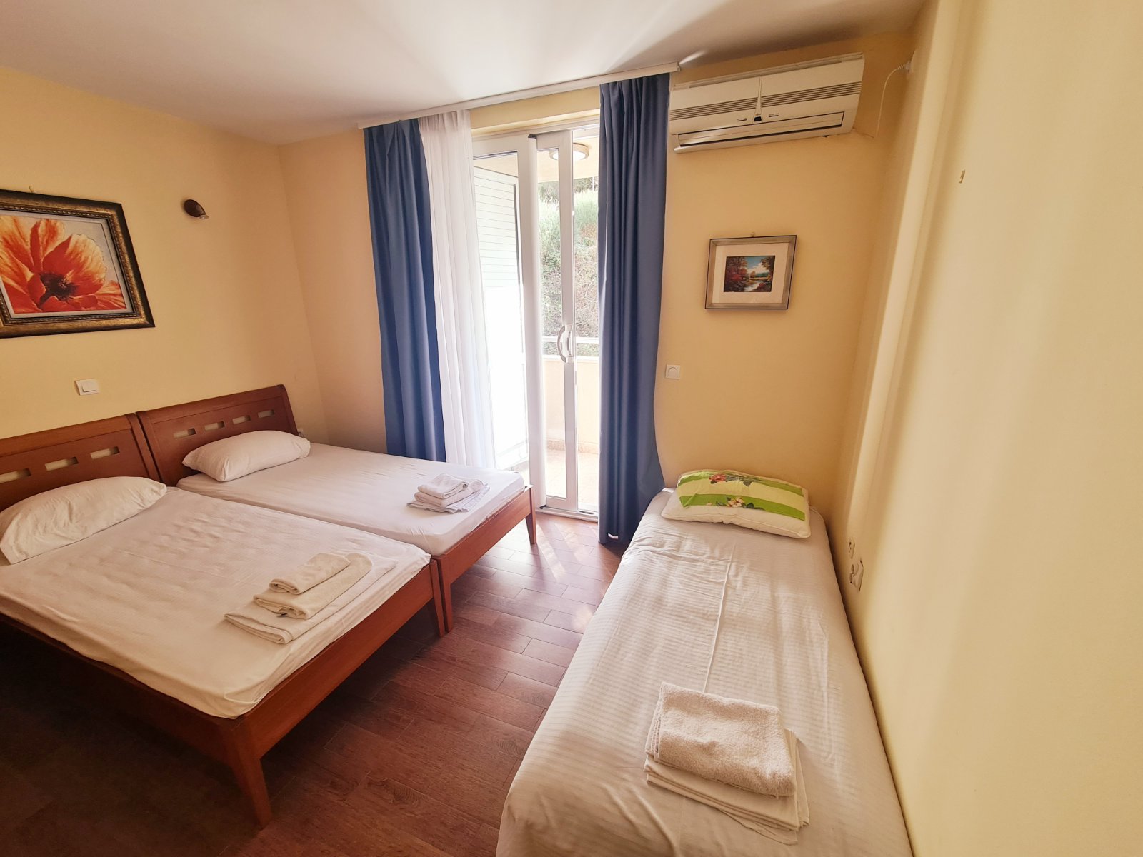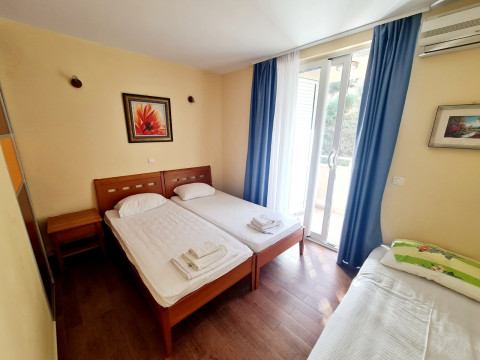 У селищі Рафаїлович, в 50 м від найближчого магазину. В 4 км від Будви (2 євро - міський автобус Olimpia Express). Відстань до аеропорту Тіват -27 км, до аеропорту Подгоріца -57 км.