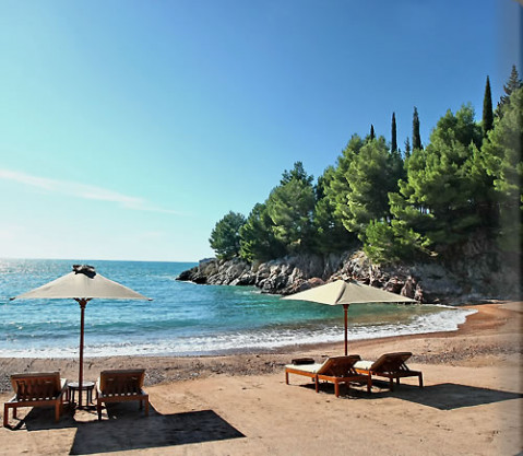 Aman Sveti Stefan - це два кілометри берегової лінії, включаючи рожеві піски пляжів Святий Стефан, Мілочер і знаменитого пляжу Королеви. Парасольки і лежаки надаються безкоштовно.