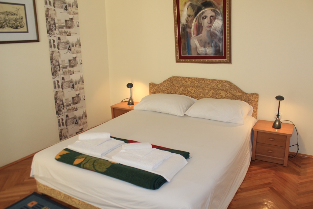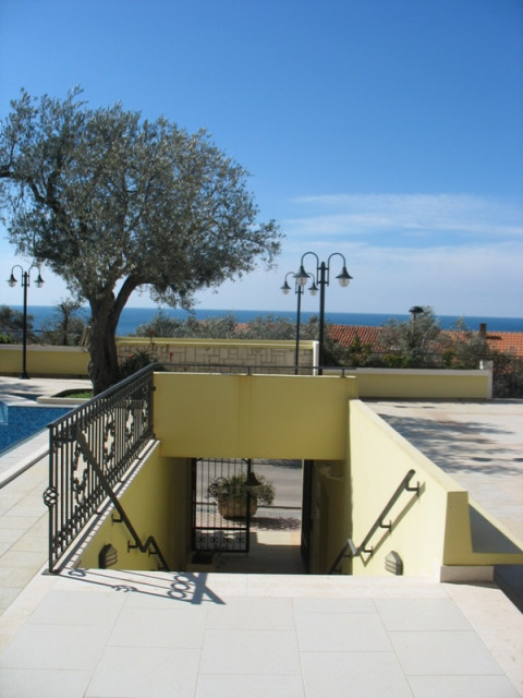 В 300м від галькового муніципального пляжу (комплект: 2лежака + парасолька - 10 євро).