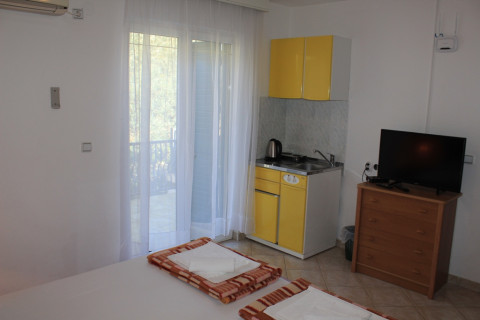 В STUD: Французьке ліжко, кухонний блок, холодильник, кабельне телебачення, кондиціонер, фен, балкон, душ.У номері STUD M / V ліжка роздільні.