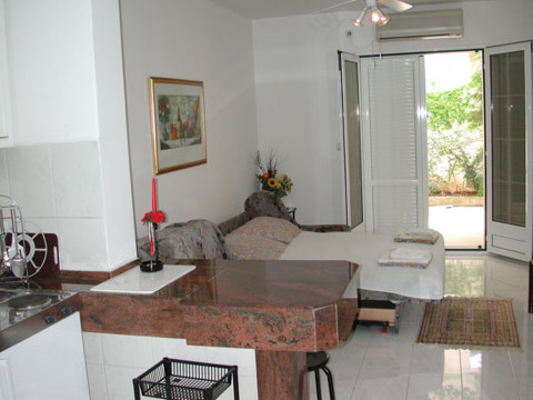 В APP 04: Двокімнатний апартамент складається зі спальні та вітальні, розрахований максимум на 4 особи, площа 34 м2 + велика тераса 12 м2 c видом на о. Св. Стефан. У спальні - французьке ліжко на 2-х чоловік, у вітальні - розкладний диван на 2-х чоловік. Повністю обладнана кухня (плита, холодильник, посудомийна машина і набір посуду), кондиціонер, сейф, інтернет, фен, праска, душ / туалет.