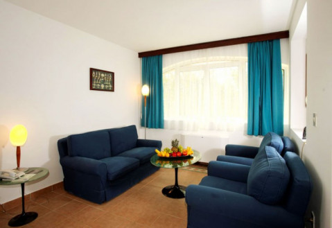 EXECUTIVE № 110: Розміщення 2+2 pax. Передпокій та дві кімнати. Більшою кімнаті ліжко 2000 х 1700, крісла та журнальний столик, телефон, телевізор, міні-бар. У меншій кімнаті ліжко 2000 х 1700, телефон, телевізор, міні-бар. У ванній - душова кабіна. (40 м2.).