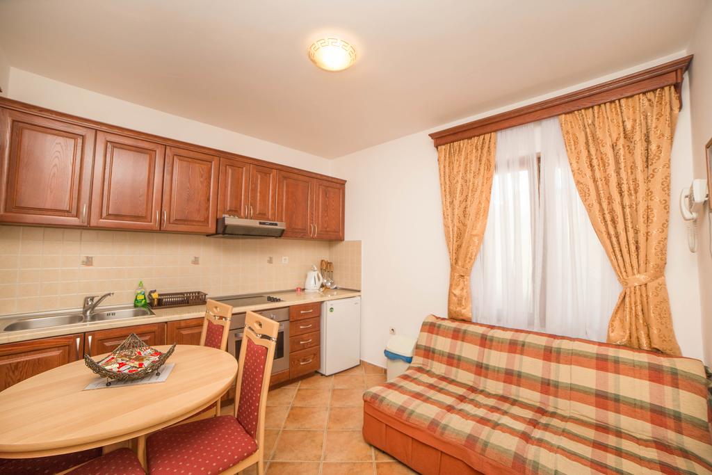 В апартаменті: 2-х кімнатний номер з балконом і видом на море на 4 людини, в спальні французьке ліжко, в вітальні диван, кухня, кондиціонер, кабельне телебачення, опалення, міні-бар, сейф, бездротовий інтернет, ванна кімната з душовою кабіною . Максимальне розміщення 4 людини.
