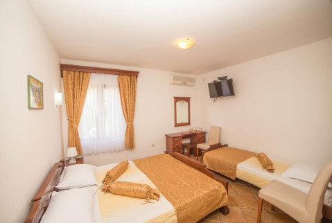 В готелі: рецепція (цілодобово), ресторан європейської та національної кухні на 70 місць, столовий зал з великими вікнами, велика тераса з прекрасним видом на Герцег-ського затоку з лежаками і парасольками, дитячий майданчик на пляжі, прокат велосипедів.