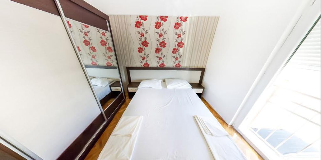 В АРР 2 bed room: всього 25 апартаментів. Трикімнатний апартамент з двома спальнями, в одній з яких французька ліжко, в іншій два окремих ліжка, у вітальні розкладний диван, повністю обладнана кухня, холодильник, санвузол з душовою кабіною або ванною, кондиціонер, телефон, балкон, більшість з видом на море. Максимальне розміщення - 6 осіб. Площа номера 75-80 м2.