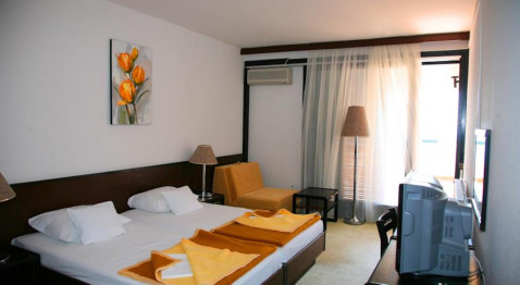 В KORPUS A: Ліжко, телефон, супутникове ТБ, кондиціонер, холодильник, ванна кімната, великі лоджії, центральне опалення.
