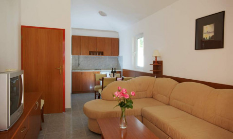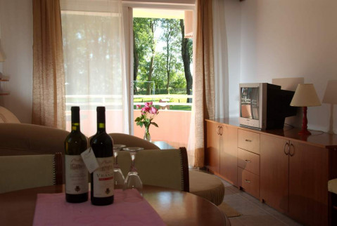 В APP: двокімнатні номери знаходяться в головному корпусі, спальня з французьким ліжком та вітальня з диваном і кухнею, холодильник, обідній стіл, кондиціонер, кабельне телебачення, балкон, душ. Максимальне розміщення - 4 чоловік.