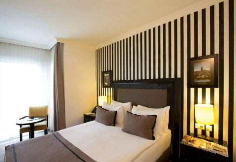 Deluxe room площею 24 кв.м. з одним ліжком king-size. Номери відрізняються видами і можуть бути з видом на сад, парк Gezi або на Босфор. Всього 74 таких номера в готелі