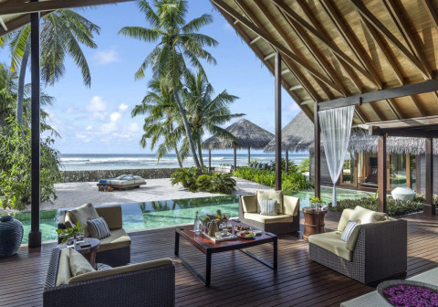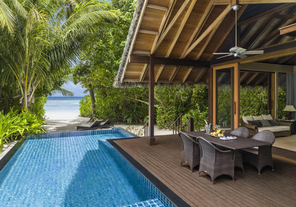 1 номер Villa Muthee (570 кв. м, вилла по праву считается «жемчужиной» и гордостью отеля, расположена в непосредственной близости к лагуне, имеет спуск в воду)