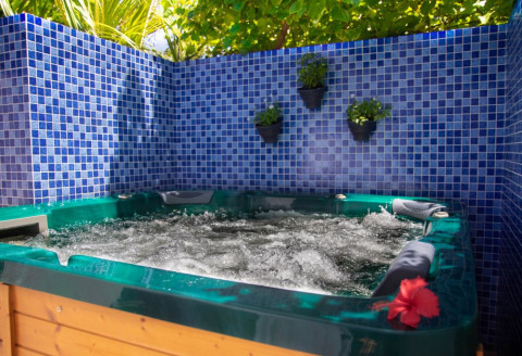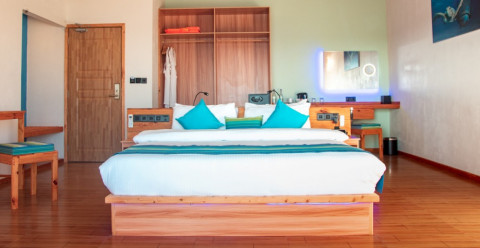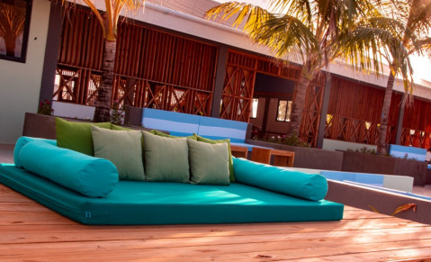 Palm Villas (50 кв.м, номера в блоках по два номера, в окружении тропического сада с видом на восход и всего лишь в 5 метрах от берега, выходят на сторону океана (есть небольшая лагуна))
