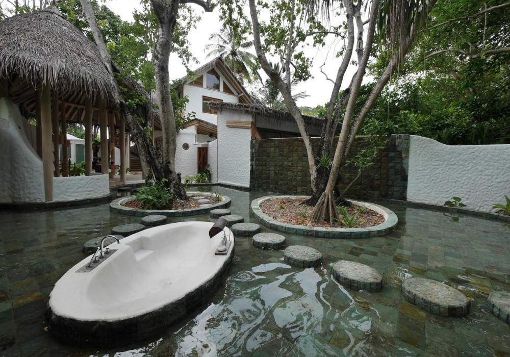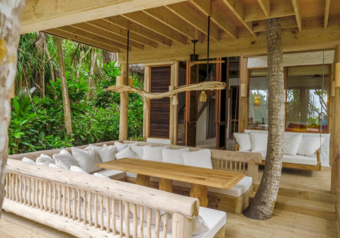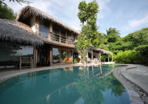 Soneva Fushi Jungle Reserve (3535 кв. м, эксклюзивный комплекс вилл на берегу, в состав которого входит: большая гостиная, 3 спальни, столовая, комната отдыха, открытый павильон для отдыха, терраса, платформа для принятия солнечных ванн, большой бассейн, кухня, винный шкаф, персональный тренажерный зал, спа-павильон, сауна, баня, терраса для массажа)