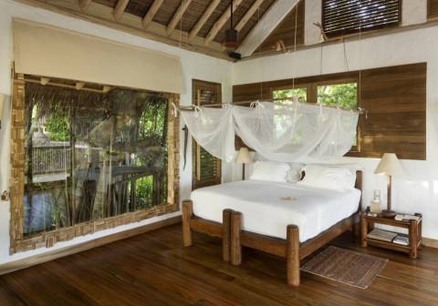 Soneva Fushi Villa Suite & Tree House (445 кв. м, номер состоит из 2 вилл. В главной вилле - спальня, гостиная, открытая ванная комната с ванной и душем, веранда, кабинет, террас, бассейн. Tree House расположен на высоте 2,5 м с 2 одноместными кроватям для детей, балконом)