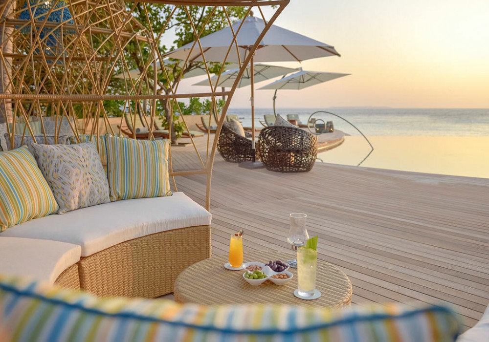 2 номера Two Bedroom Beach Residence With Private Pool (610 кв.м, двухэтажные пляжные виллы расположены вдоль берега, на первом этаже имеют спальню и гостиную, с выходом на просторную террасу с частным бассейном, на втором этаже - спальня с прекрасным видом на океан)