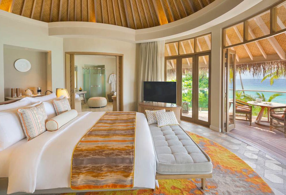 9 номеров Beach House With Private Pool (309 кв.м, пляжные виллы расположены вдоль берега, имеют овальную спальню и прилегающую гостиную, которая выходит на просторную частную террасу с бассейном, в окружении сада с видом на пляж)