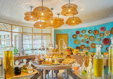ресторан Zeytounb (средиземноморская и ближневосточная кухни), ресторан Ocaso (японская, мексиканская и перуанская кухни), ресторан Thyme на пляже, бар Naiboli.