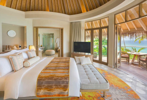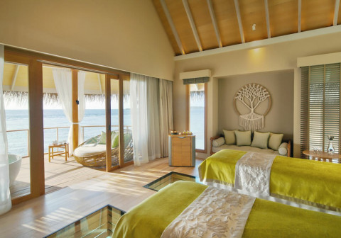 2 номера Ocean Residence With Private Pool (453 кв.м, водные виллы имеют овальную спальню, с прилегающей гостиной и столовой, которые выходят на просторную террасу с частным бассейном и собственным спуском в воду)