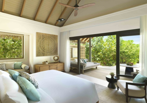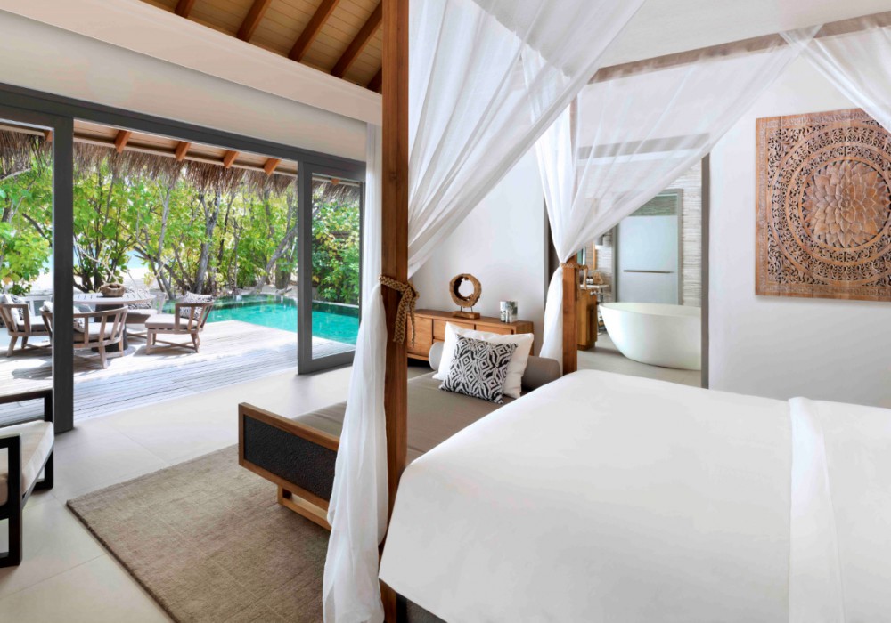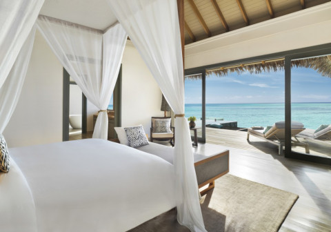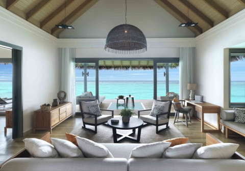 1 номер Four Bedroom Over Water Pool Residence (917 кв.м, двухэтажная вилла на воде с прямым спуском в воду, расположена в самом конце jetty, две спальни с кроватью king-size, две спальни с двумя односпальными кроватями, гостиная, обеденная комната, терраса для SPA-процедур, частная терраса, частный бассейн)