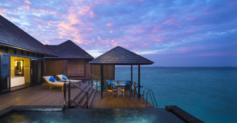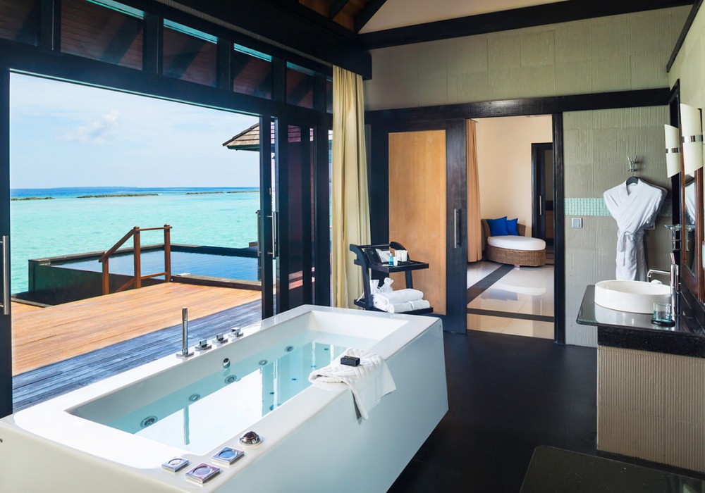 1 номер Aqua Retreat 2-Bedroom Villa (350 кв. м, вилла над водой с частным бассейном, 2 спальни, зона гостиной, обеденный павильон, джакузи на террасе)