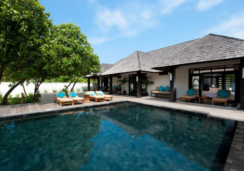 1 номер Celebrity Retreat 3-Bedroom Villa (600 кв. м, 2х этажная вилла с садом и 2-мя частными бассейнами, 3 спальни, обеденный павильон, тренажерный зал, 3 ванные комнаты, джакузи, сауна)