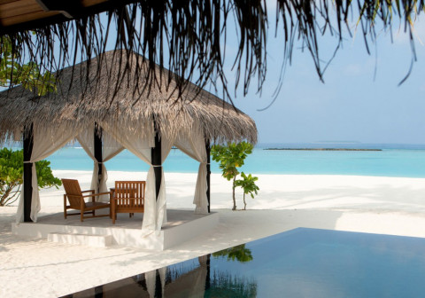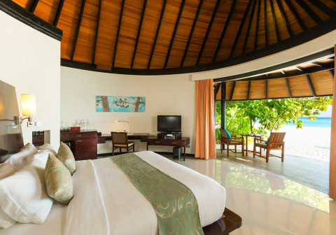 40 номеров Deluxe Beach Villas (125 кв. м, виллы на берегу с видом на пляж и лагуну, ванная комната с джакузи, беседка с тростниковой крышей на пляже)