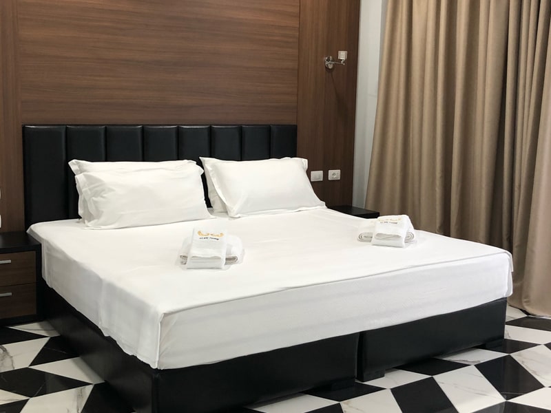 Standard: двуспальная кровать, шкаф, мини-бар, телевизор, прикроватные тумбочки, ванная комната (фен, ванные принадлежности), кондиционер.