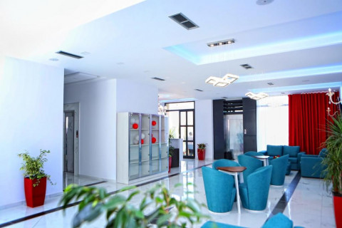 Отель находится всего в 6-и км от центра города Влера и 150км от аэропорта. Вы сможете отведать изысканные блюда от итальянского шеф-повара в ресторане на 7-м этаже или расслабиться в lounge баре, что расположился на 8-м этаже, которые Вас приятно порадуют своими панорамными видами 360 °.