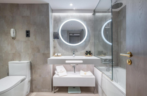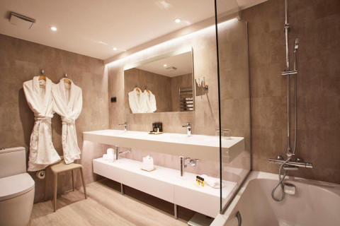 Suite (макс. 3+0 чел.) два 49"Smart TV, кофемашина, ванная комната с душем и с двумя раковинами, минибар, зона гостиной и спальни разделены прозрачной дверью