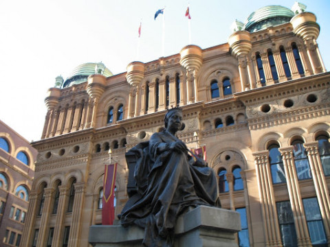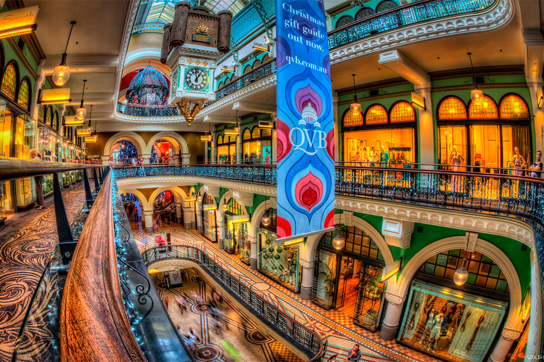 Сиднейцы называют Дом королевы Виктории аббревиатурой QVB. Построено здание было в 1898 г. Проект разработал архитектор Джордж МакРей. С 1810 г. на месте, где сегодня находится роскошный торговый центр, был продуктовый рынок. В то время эта часть города была окраиной, рядом находилось кладбище, и этот район был довольно унылым.