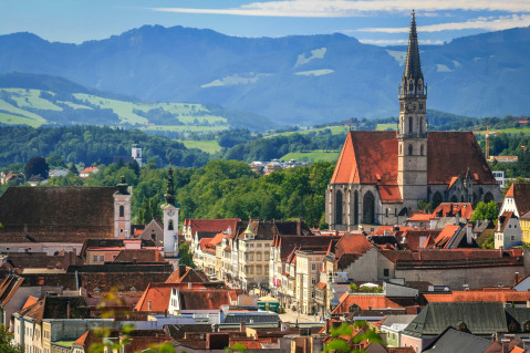 Церковь Св.Мартина - самая древняя действующая церковь Австрии. Когда-то здесь было культовое сооружение кельтов. Во время раскопок был обнаружен зал с опорами, бывший частью королевского жилища кароллингов. Внутри храма можно увидеть камни с надписями, сделанные римлянами, а также древнюю печь. Кроме того интересна картина Вольто Санта де Лукка, на которой изображен лик Спасителя (1440г). Решение построить готическую церковь в XIX веке выглядит довольно неожиданно. Строительство Нового собора было начато в 1855 г., когда епископом Линца был F.J. Rudiger. Первый камень был заложен в 1862г. Здание строилось под руководством архитектора Винсента Штаца, который в это же время возводил Кельнский собор. Высота башни собора была ограничена (134м), чтобы она не превышала высоту Штефансдома в Вене. Собор рассчитан на 20000 прихожан и известен своими витражами. На одном из них, "Окне Линца", изображены эпизоды бурной истории города.