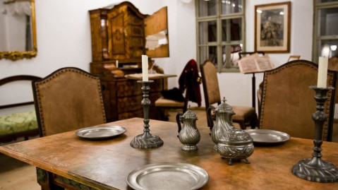 Музей открыли в этом доме в 1996 году. Экспозиция музея расскажет об истории дома и семьи Моцартов. Гордость музея — оригинальное фортепиано и известный портрет семьи Моцартов «Танцмейстерский зал».