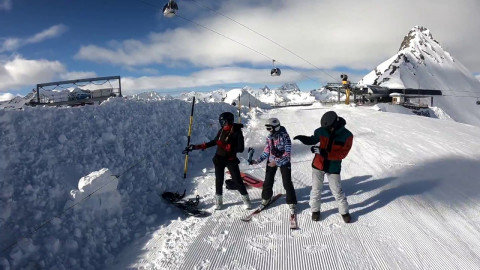 Конечно тем, кто только начинает кататься на горных лыжах или сноуборде, наверное, не стоит сразу выходить на сложные трассы. Именно для начинающих в Зёльдене подготовлено 46% всех спусков. Первое, что видят туристы, поднявшись на Гиггийох – широкие укатанные ратраками поля, где под руководством инструкторов из местной горнолыжной школы двигаются цепочки новичков. Места хватает всем, однако необходимо помнить о безопасности – шлем для занятий в группе обязателен.