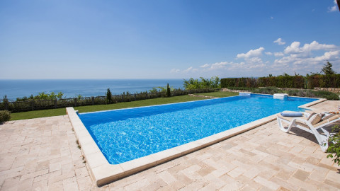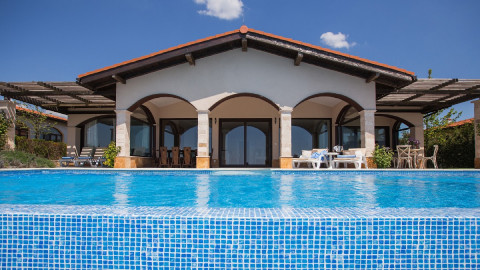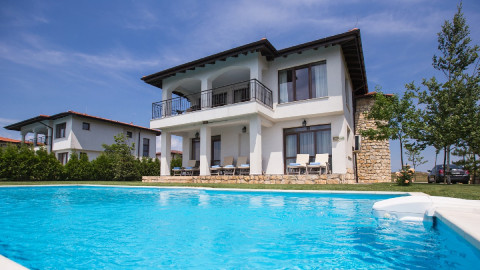 Deluxe Private Villa: Индивидуальные виллы класса Делюкс расположены вдоль Южной аллеи комплекса и образуют три линии: береговую линию на вершине скалы прямо над морем, линию с видом на гольф и море и линию с видом на гольф и озеро. Эти виллы предназначены для полного уединения и уникальной релаксации; сочетают в себе пространство, приватность и уют. Виллы предлагают жилую площадь более 200 кв.м и позволяют разместить до восьми человек. Все роскошные индивидуальные виллы обеспечивают доступ к открытым бассейнам, являясь идеальным местом для погружения в расслабляющую природу курорта BlackSeaRama.