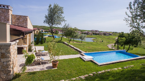 Green villas: Прекрасное расположение одноэтажных грин вилл предлагает уникальный вид на лунку №18 гольф-поля класса Signature и расслабляющее блаженство черноморского горизонта. Грин виллы находятся в нескольких шагах от Клабхауса и построены в общем стиле дизайнерской концепции. Украшенная натуральными материалами, с максимальным вниманием к деталям, эксклюзивная собственность обеспечит вам состояние высшей гармонии. Все виллы оснащены бассейном, из которого открывается прекрасный вид.