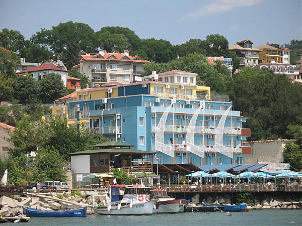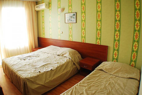 В курортном городе Балчик, на берегу моря. Располагает с 59 двухместных номеров и 4 апартамента.