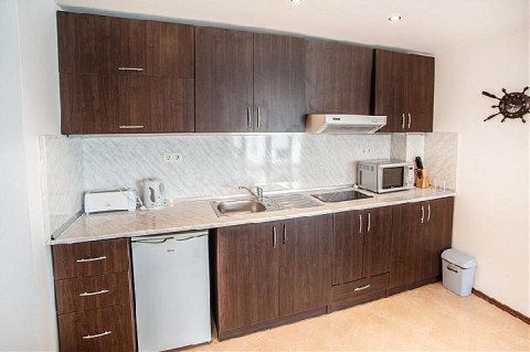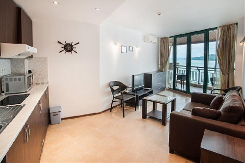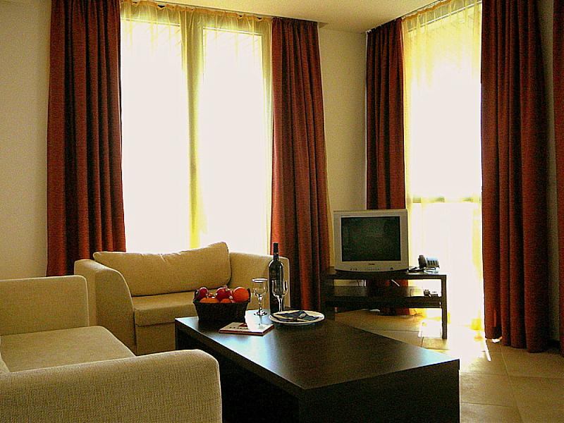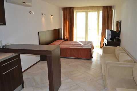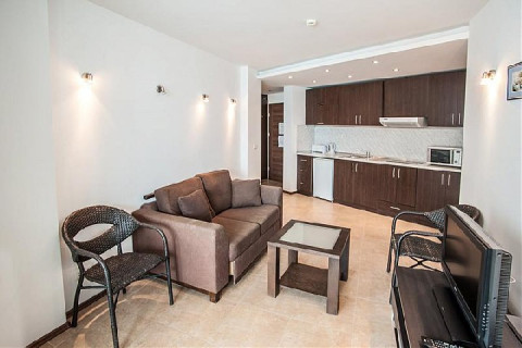 1BEDROOM APARTMENT: oдна двуспальная или две односпальныe кровати, гостиная с раскладным диваном /140cм/, оборудованный кухонный уголок с посудой, плитой; 1 ванная комната (с ванной или душем), макс. 2в.; 2в.+2р.; 53-86 кв.м.;
