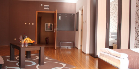 STUDIO: 2 односпальные кровати или 1 двуспальная кровать + раскладной диван; ванная комната с ванной ; балкон; макс. 3в.+1р, 2в+2р; 48 м2