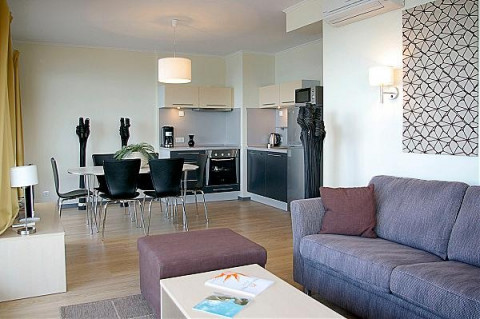 1BEDROOM APARTMENT: 2 помещения: гостиная с диваном и кухонным уголком, спальня с двумя односпальными кроватями, 1 ванная комната с душем, макс. 3в.+1р., 4в., 60м2;