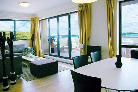 3 BEDROOM APARTMENT: 3 помещения: гостиная с диваном и кухонным уголком, 3 спальни, каждая с двумя односпальными кроватями, 2 ванные комнаты с душем, макс. 7в.+1р., 8в., 100м2.