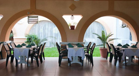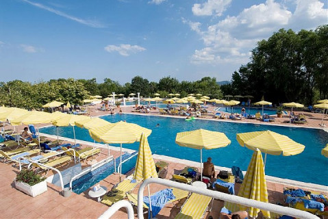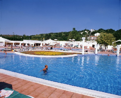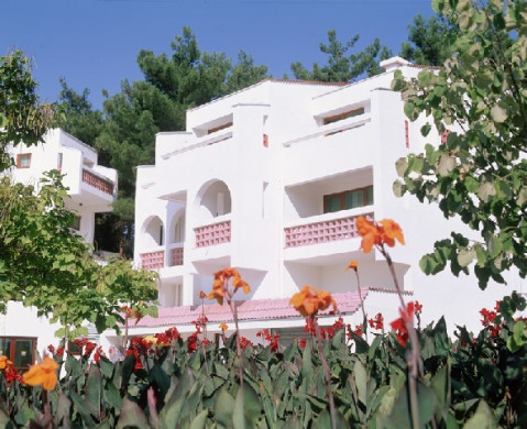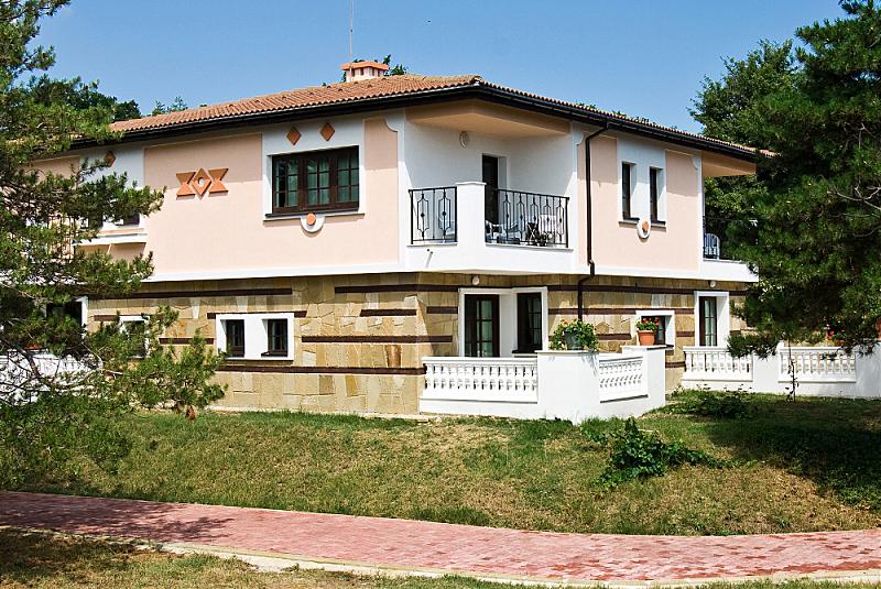 В курортном поселке Дюни, в 150-200 м. от пляжа. 293 номера расположены в виллах.