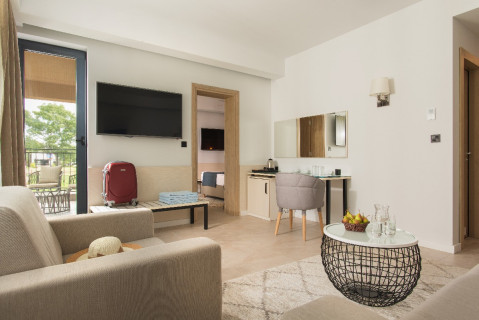 APARTMENT DELUXE: 1помещение с 1 двухспальная кровать, 1 раскладной диван и 1 раскладное кресло; ванная комната с душем, макс.4+1; 50кв.м.;