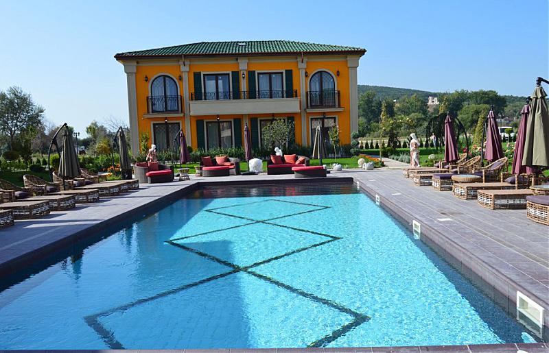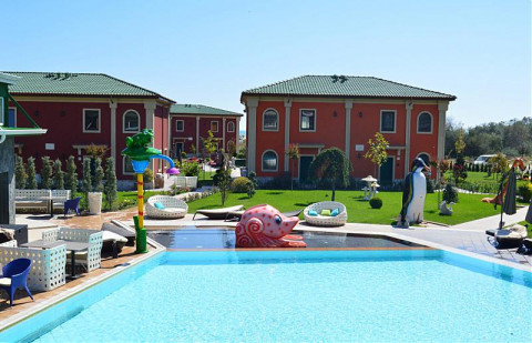 Комплекс "Therma Eco Spa & Kids & Villas" расположен на территории площадью 4 га, что позволило разместить на этой территории два пятизвездочных отеля на 600 отдыхающих с закрытыми и открытыми бассейнами с минеральной водой, открытым спортивным бассейном олимпийского размера, закрытую ледовую арену предназначенную как для профессиональных спортсменов, так и для любителей покататься на коньках, восемнадцать комфортабельных двухэтажных вилл, оборудованный песочный пляж с ресторанами, спортивные площадки, бары и пиццерию, зеленые парковые зоны с растениями из разных стран.