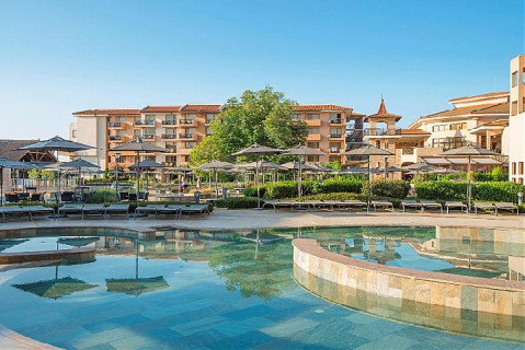 На берегу моря. 500 номеров/465 двухместных номеров, 10 студио и 25 апартаментов/