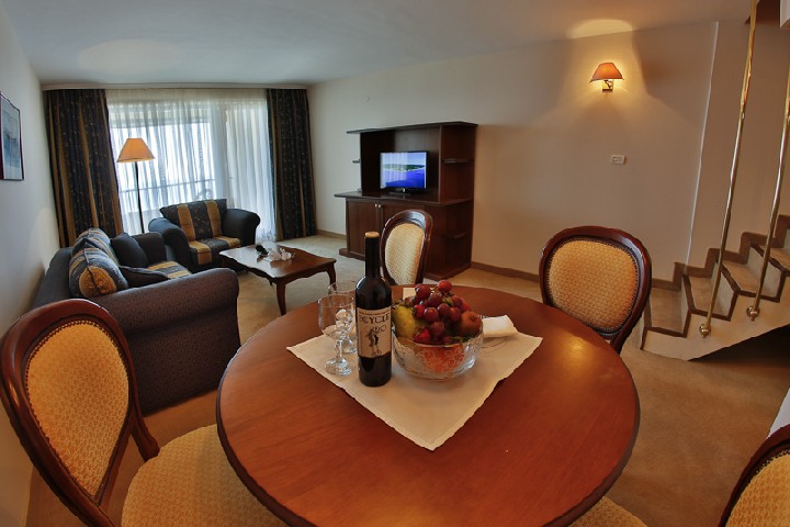 1 BEDROOM MAISONETTE: Первый этаж: гостиная с раскладной кроватью, ванная комната с душевой кабиной и туалетом; Второй этаж: спальня с 1 двуспальная кровать, ванная комната, туалет; макс. 2в.+2р., 3в.; 75м2; Все номера с видом на море.